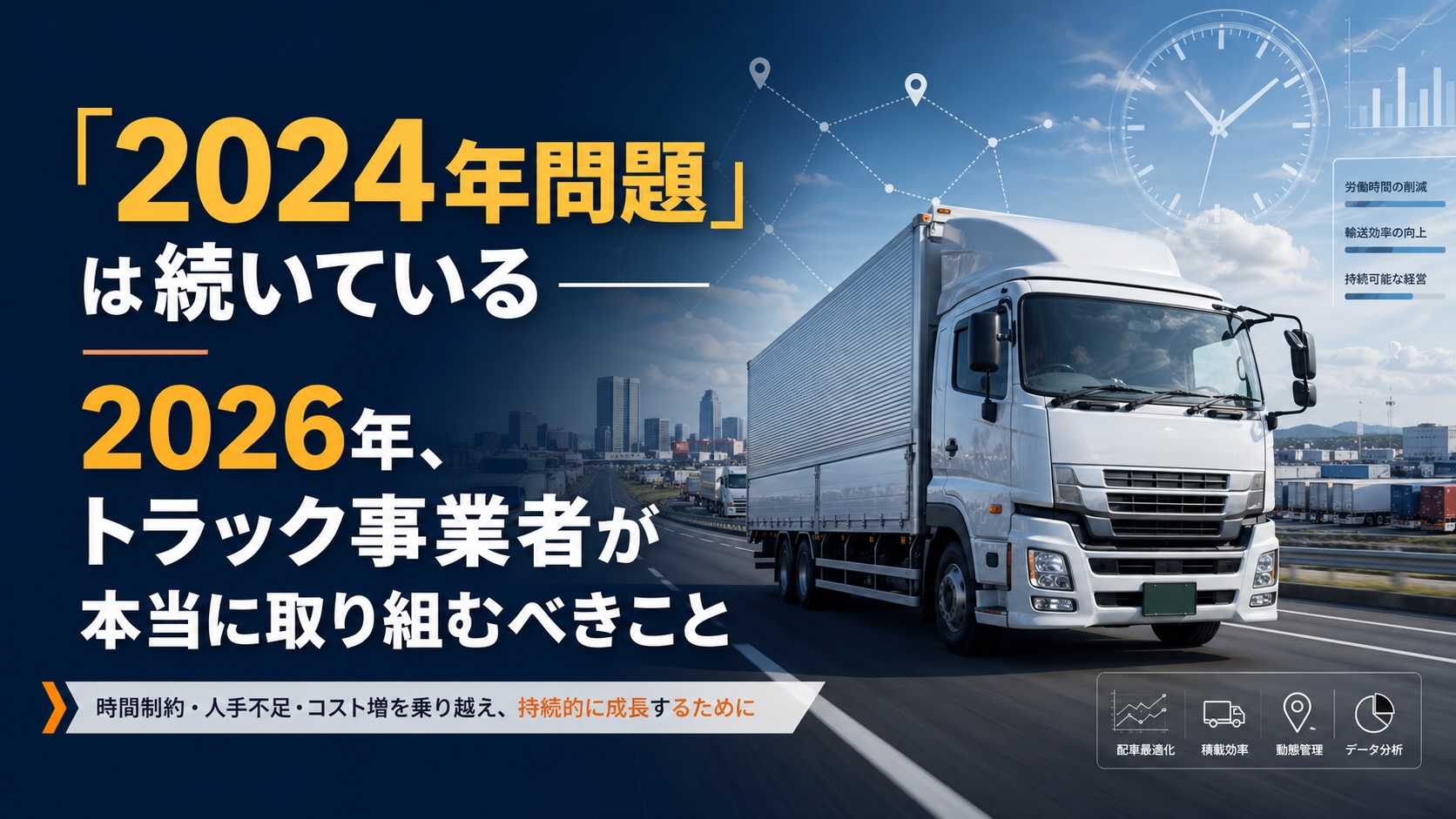 2026年のトラック業界で最も重要なのは、「新しい規制が次々に来る」という見方ではなく、2024年問題への実務対応と、改正物流効率化法への対応を一体で進めることです。