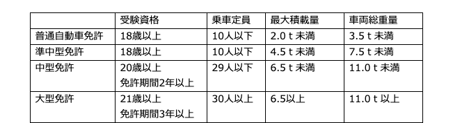 トラックの運転には最大積載量によって、準中型、中型、大型の運転免許が必要です。