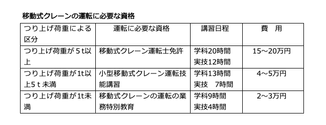 つり上げ荷重が0.5t~1t未満の移動式クレーンの作業に必要です。