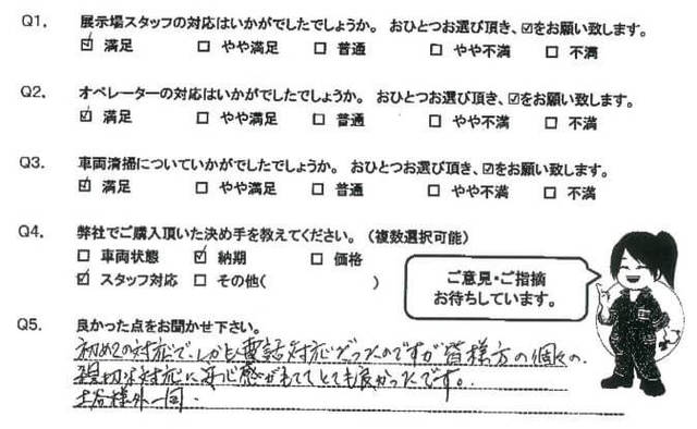 Q1.決め手使用勝手が合致したからQ2.良かった点縞板が張ってあり内フックが多かった事Q3.気になった点トルコンであった事。煽りの開閉補助が外されていた事Q4.要望など多少の改修要望が出来ると良い。例えば、煽り補助の取り付けとか。続きを読む