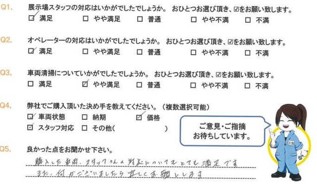 Q1.決め手使用勝手が合致したからQ2.良かった点縞板が張ってあり内フックが多かった事Q3.気になった点トルコンであった事。煽りの開閉補助が外されていた事Q4.要望など多少の改修要望が出来ると良い。例えば、煽り補助の取り付けとか。続きを読む