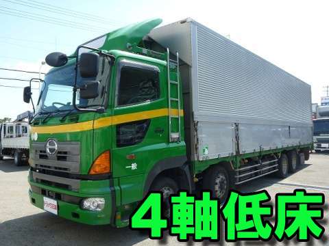 日野レンジャーのクレーン付平ボデー 増々トン ワイド L=6.0 角足 ユニックURG374 4段 クレーンラジコン フックイン ローダーメーター 3方開 ラック1対 床鉄板張り 240PS アルミホイール...続きを見る>